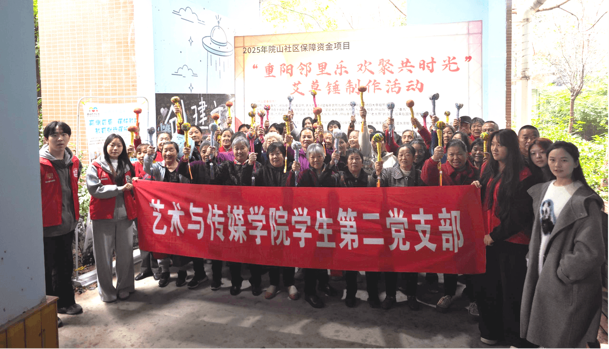 为弘扬尊老、敬老、爱老、助老的传统美德,扎实推进志愿服务工作,切实履行基层党组织服务群众的职责,10月29日上午,艺术与传媒学院学生第二党支部师生党员前往院山社区,参加了以“重阳邻里乐,欢聚共时光”为主题的重阳节系列活动。本次活动由支部辅导员李伟艺老师带队,支部预备党员李思佳和入党积极分子陈一卓、朱琳、芶宇婧全程参与,他们以实际行动为社区老年群体送上了节日关怀。支部师生参与重阳节活动社区工作人员为大家详细讲解本次活动中艾草锤的制作方法,...
