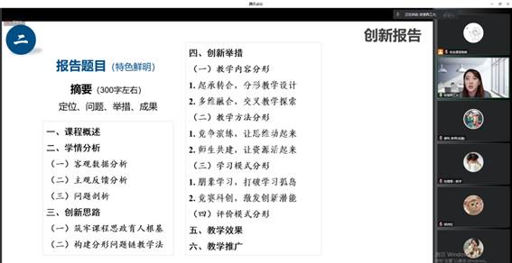 本次训练营活动邀请了全国教师教学大赛一等奖选手和国赛评审专家为参训教师讲解教学比赛规则、评委关注重点、比赛资料准备、课程设计、呈现方式、说课技巧、优秀参赛课程分析等内容,专家对本次参训选手的课程准备资料给予指导及答疑。