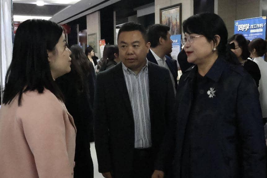 学校党委书记、省政府督导专员韩秀英,副校长姚一永和就业指导中心主任蔡松伯来到现场,与多家企业代表深入对接,详细了解企业人才需求和招聘进展;同时实时跟踪毕业生求职动态与简历投递情况,针对不同需求的毕业生及时提供指导与鼓励。