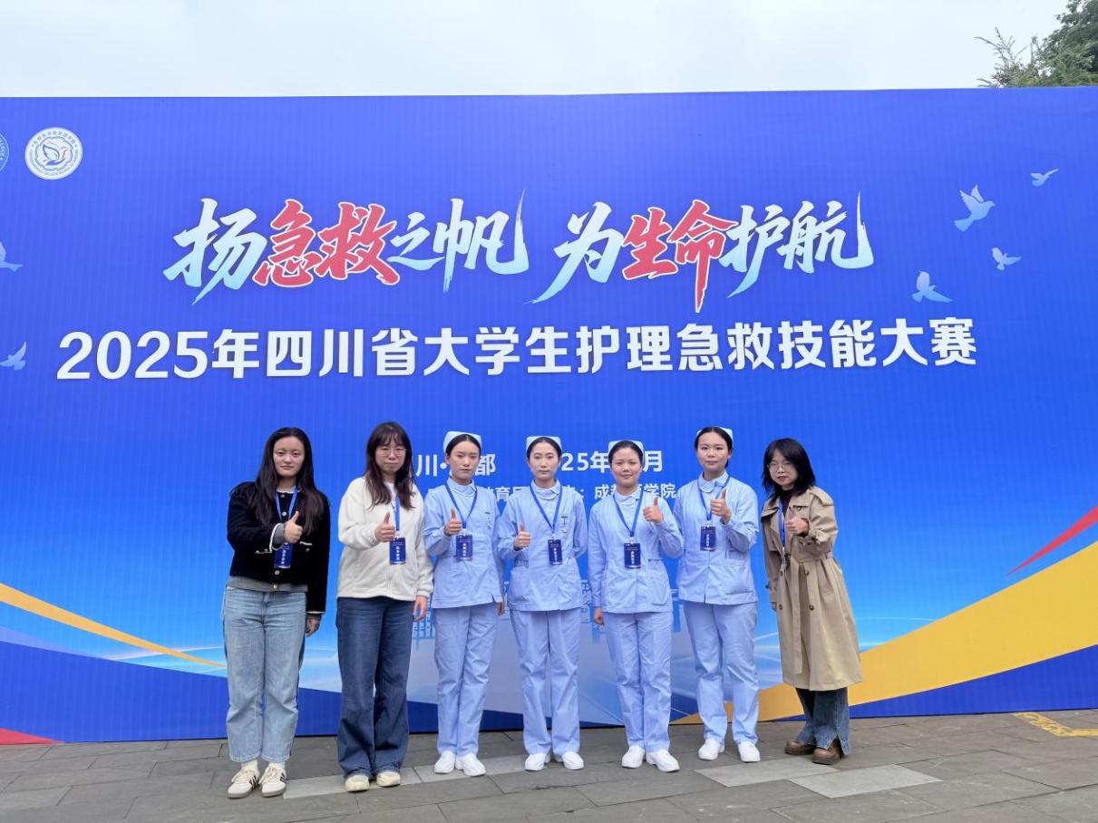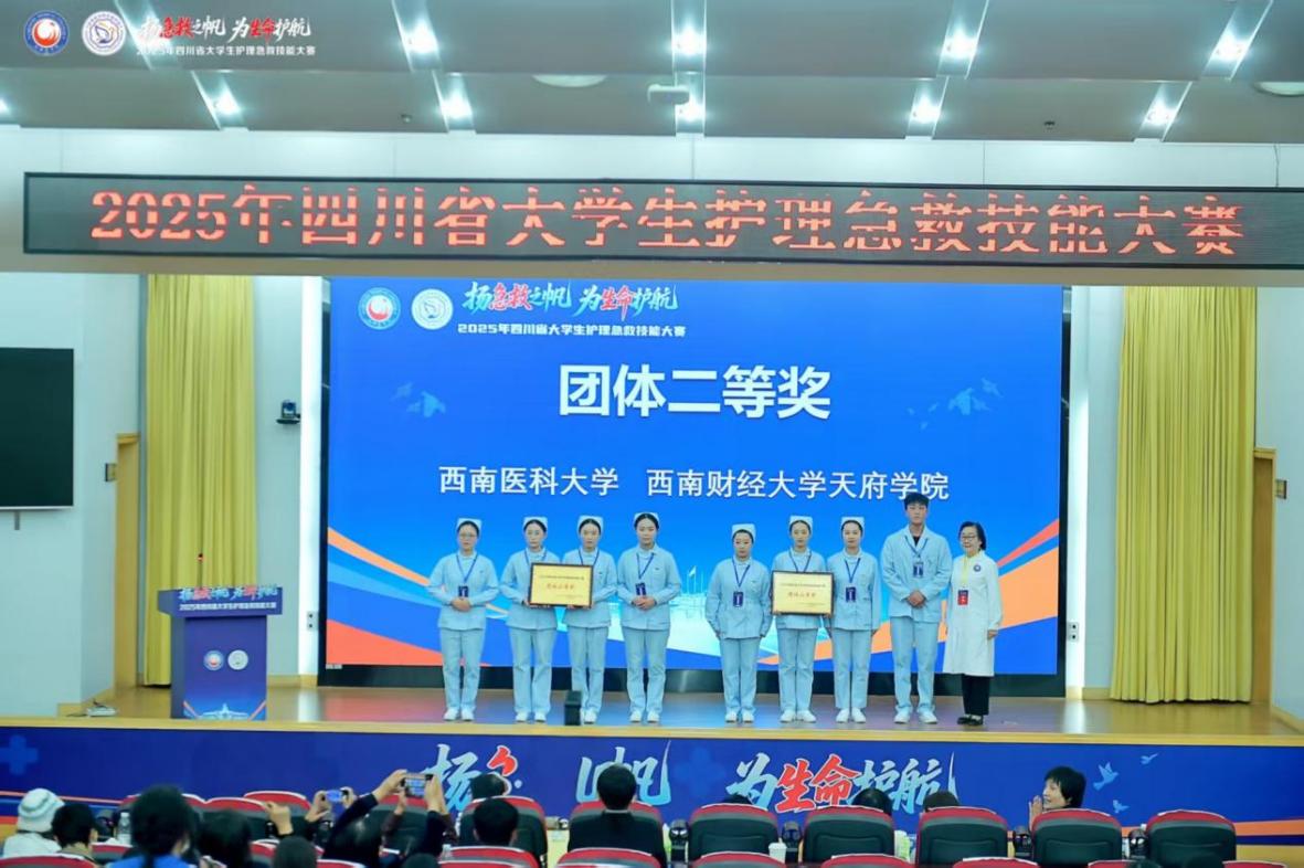 由四川省教育厅主办、成都医学院承办的“扬急救之帆,为生命护航”2025年四川省大学生护理急救技能大赛于10月31日圆满落幕。由西财天府学院康养护理学院师生7人组成的代表队从9支参赛队伍中突围进入决赛,荣获团体二等奖。