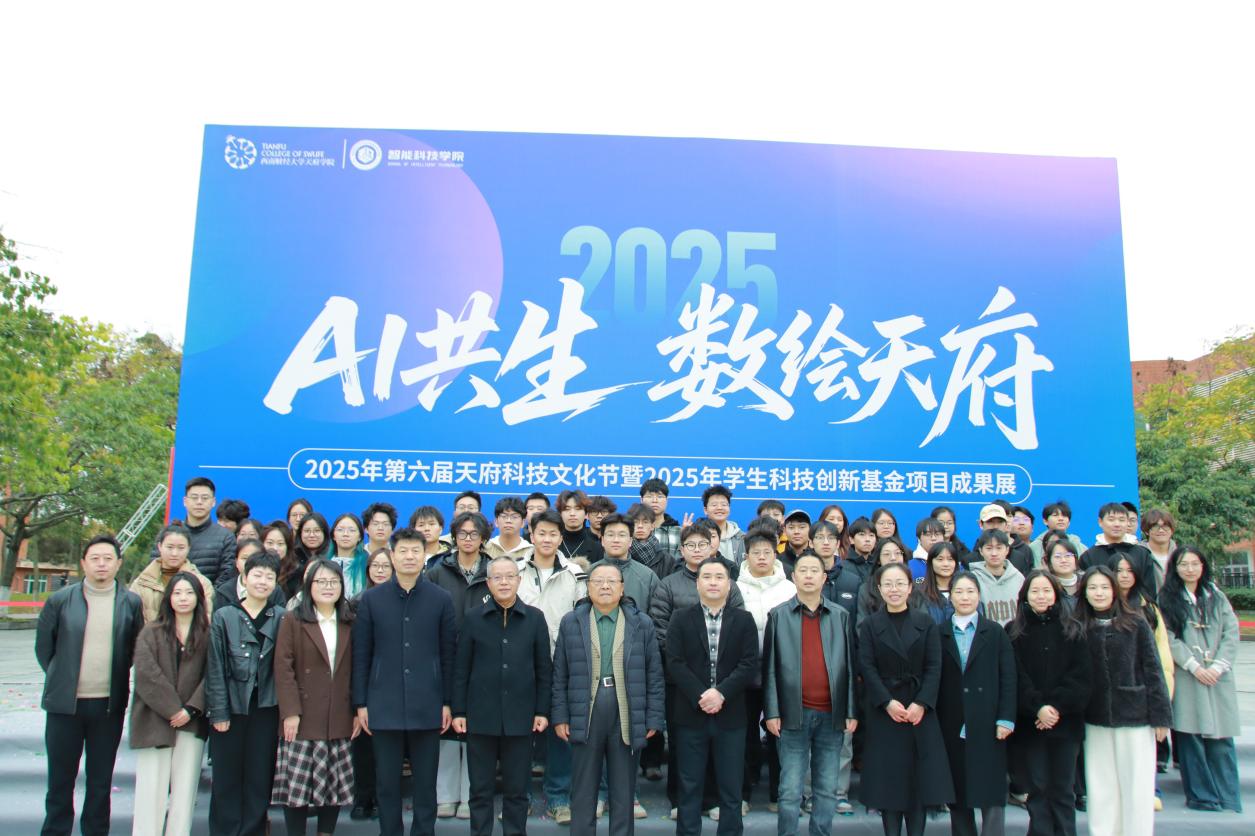 11月18日,西南财经大学天府学院绵阳校区光华广场上科技氛围浓厚、创意涌动——“AI共生 数绘天府”2025年第六届天府科技文化节暨2025年学生科技创新基金项目成果展在这里拉开序幕。此次活动由西南财经大学天府学院主办,学校智能科技学院和四川传统文化研究中心承办,西南科技大学制造科学与工程学院、绵阳师范学院人工智能学院、绵阳市非物质文化遗产保护中心以及绵阳市天府科技云服务中心共同协办,旨在深化产教融合,展示人工智能技术与多领域融合的创新成果,为全校师生带来一场科技与文化的盛宴。