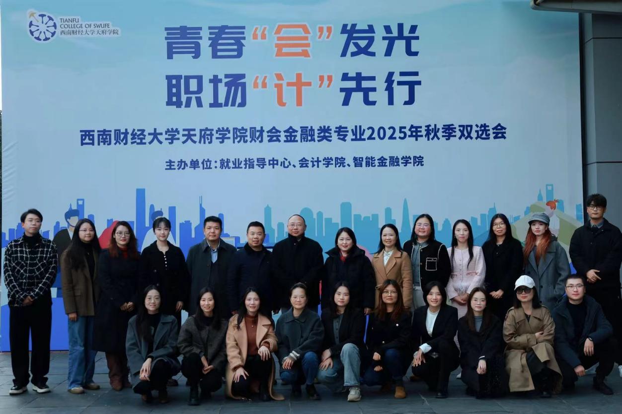 为抢抓2026届毕业生秋季求职关键期,精准护航会计学子求职之路,11月25日下午,学校就业指导中心、会计学院和金融学院联合举办的“青春‘会’发光,职场‘计’先行”西南财经大学天府学院财会金融类专业秋季双选会在成都校区(西区)1 号楼一楼大厅火热启幕。来自成渝地区的27家优质用人单位进校揽才,岗位需求覆盖会计核算、审计鉴证、税务筹划、财务助理等岗位。