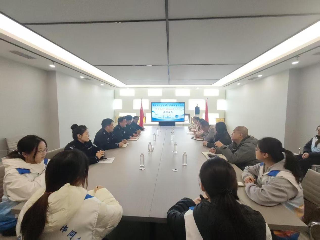 邓涵爻与秦陈荣在会上分别发言。邓涵爻表示,教务处作为语言文字工作的实际依托部门将全力支持反诈工作的开展,希望通过警校深度合作,弥补学生在防骗识骗技能上的短板,通过这支队伍扩大影响力,让安全知识深植师生心中,真正做到“防患于未然”。秦陈荣介绍了志愿队的前期筹备情况及后续工作计划,并希望警方能在专业知识方面给予更多指导,助力即将开展的反诈宣传活动顺利开局。