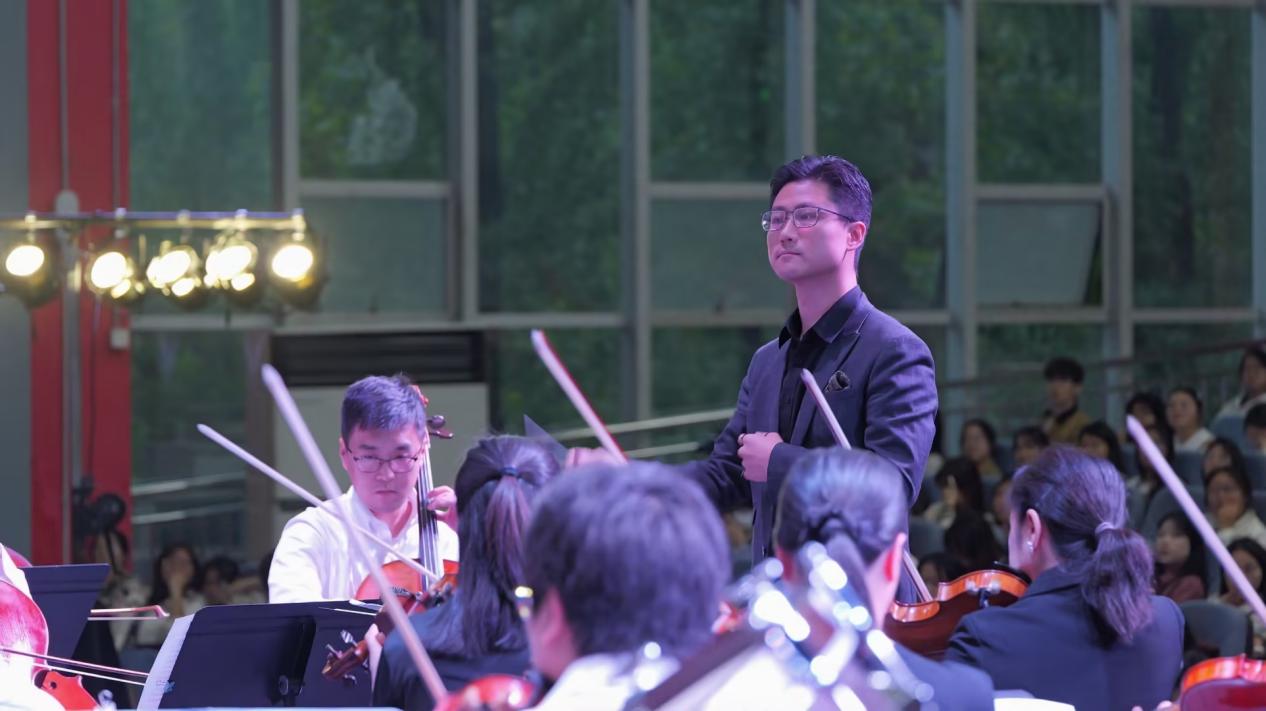 演出过程中,指挥家结合曲目进行交响乐知识普及,系统介绍弦乐、木管、铜管、打击乐等乐器的音色特点与表现功能,通过生动讲解与互动交流,让高雅艺术贴近师生、融入校园,现场掌声不断、氛围热烈。