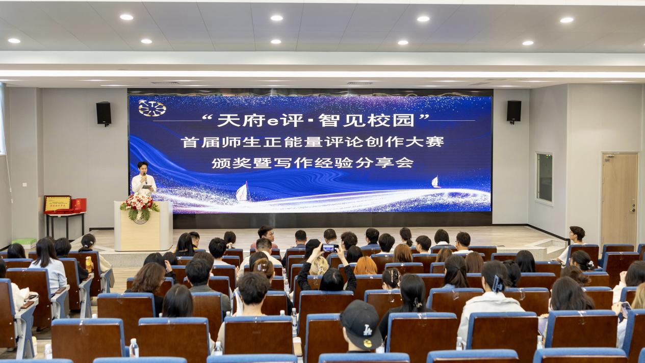 4月14日下午,“天府e评·智见校园”首届师生正能量评论创作大赛颁奖暨写作分享交流活动在西南财经大学天府学院绵阳校区成功举办。活动现场,绵阳市委网信办与学校正式共建大学生正能量评论创作实训基地。这也是绵阳首个面向高校师生的正能量评论创作实训平台,标志着校地协同培育青年正能量创作力量、推进校园网络文明建设迈入新阶段。
