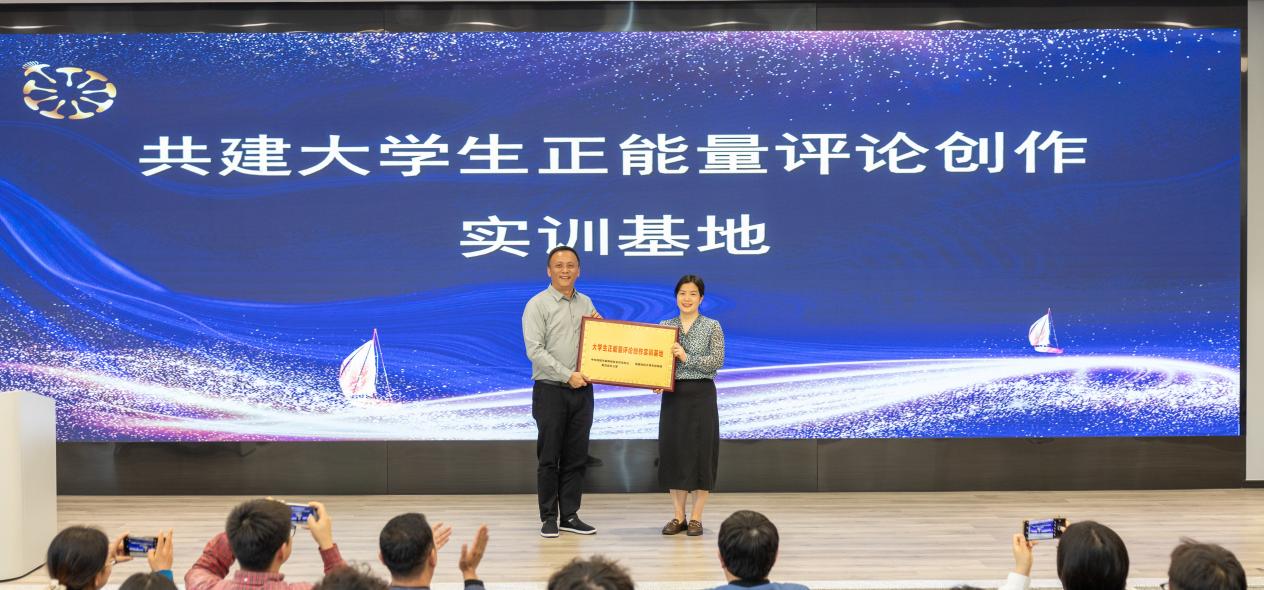 活动现场还举行了共建大学生正能量评论创作实训基地授牌仪式暨校园正能量评论创作导师聘任仪式,来自网信系统和新闻传媒领域的多位业务骨干受聘担任校园导师,未来将定期走进校园提供常态化指导,助力青年思想引领工作在校园落地生根。