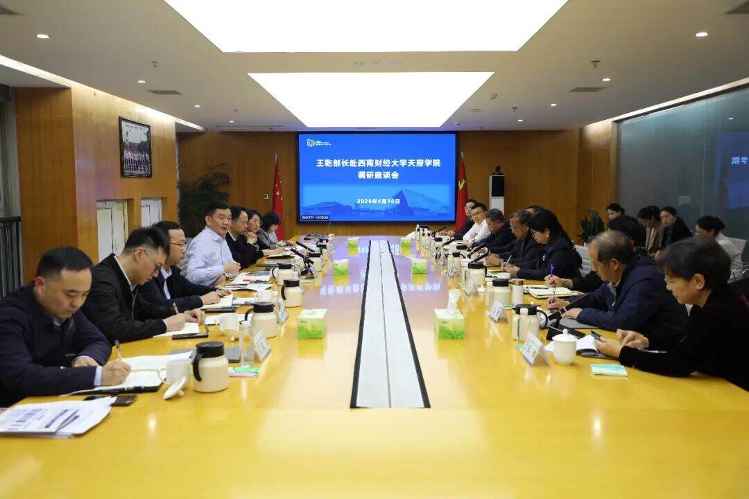 省委社会工作部副部长胡建林,西南财经大学副校长桂富强,西南财经大学天府学院董事长、校长蒲果泉,西南财经大学天府学院党委书记、省政府督导专员韩秀英等参加调研和座谈。