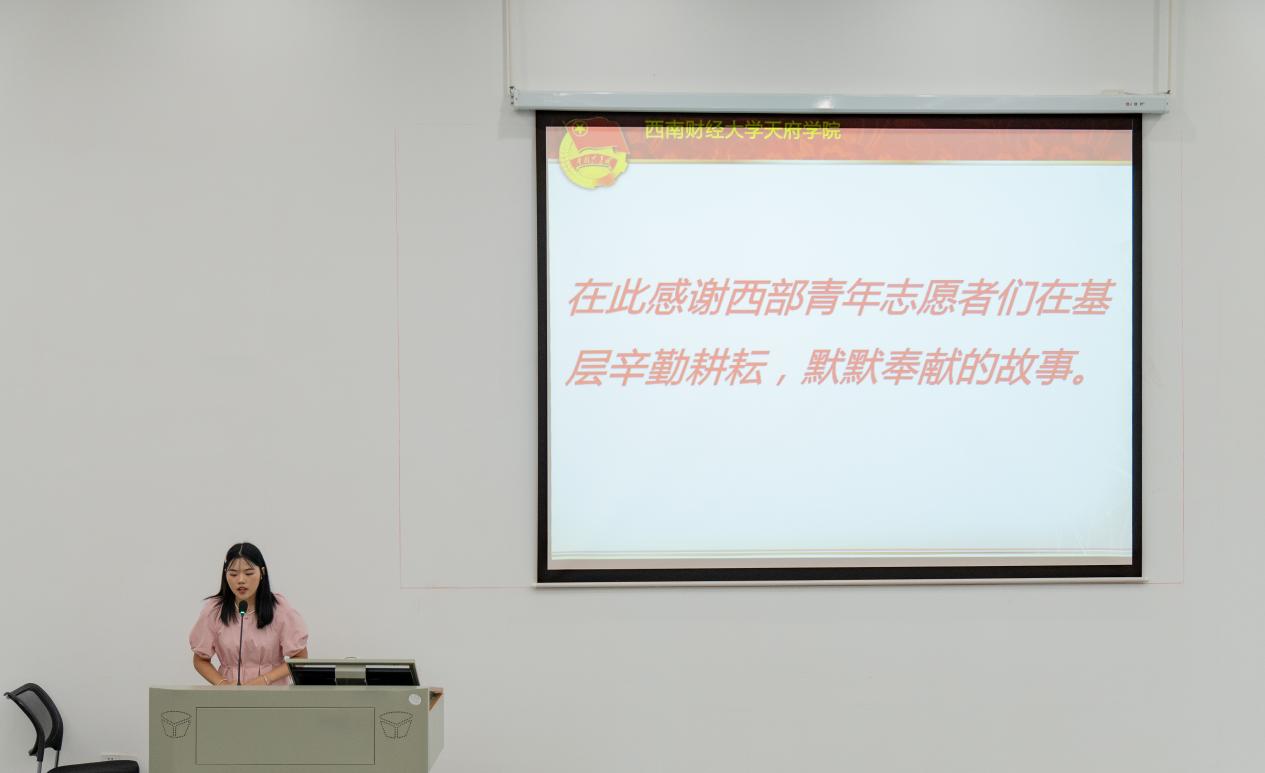 首批大学生志愿服务西部计划成员、有着20余年志愿服务经历的冯艾,支援汶川地震、重建北川灾区的王鹏,走出大山、回到大山、建设大山的韦敏平,远赴新疆生产建设兵团、发挥医学专业所长的张颖怡,贡献自己力量、带动贵州当地经济发展的郭贵,五位扎根西部基层一线的志愿者们的故事深深感染着现场每一个人,激起了每一个人的青春热情。活动结束后,学生代表上台分享心得,“志愿者们深入基层一线、奉献西部建设的感人事迹令人折服,催人奋进,我们将以他们为榜样,志存高远,脚踏实地,将个人奋斗融入西部发展大局中。”