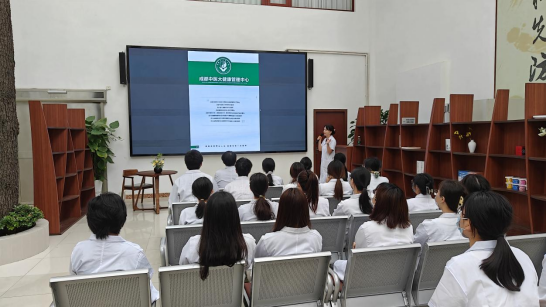 成都中医大健康管理部主任彭莹莹向学生们详细介绍了本机构的总体情况,重点就健康管理科、功能医学科、体检科、综合抗衰老科等科室的业务范围与特色服务进行介绍,并列举近几年对亚健康问题用户进行有效健康管理的典型案例,科普了功能医学与健康管理的密切关系。学校就职于该机构的应届毕业生曾馨与大家分享了自身的职业规划。