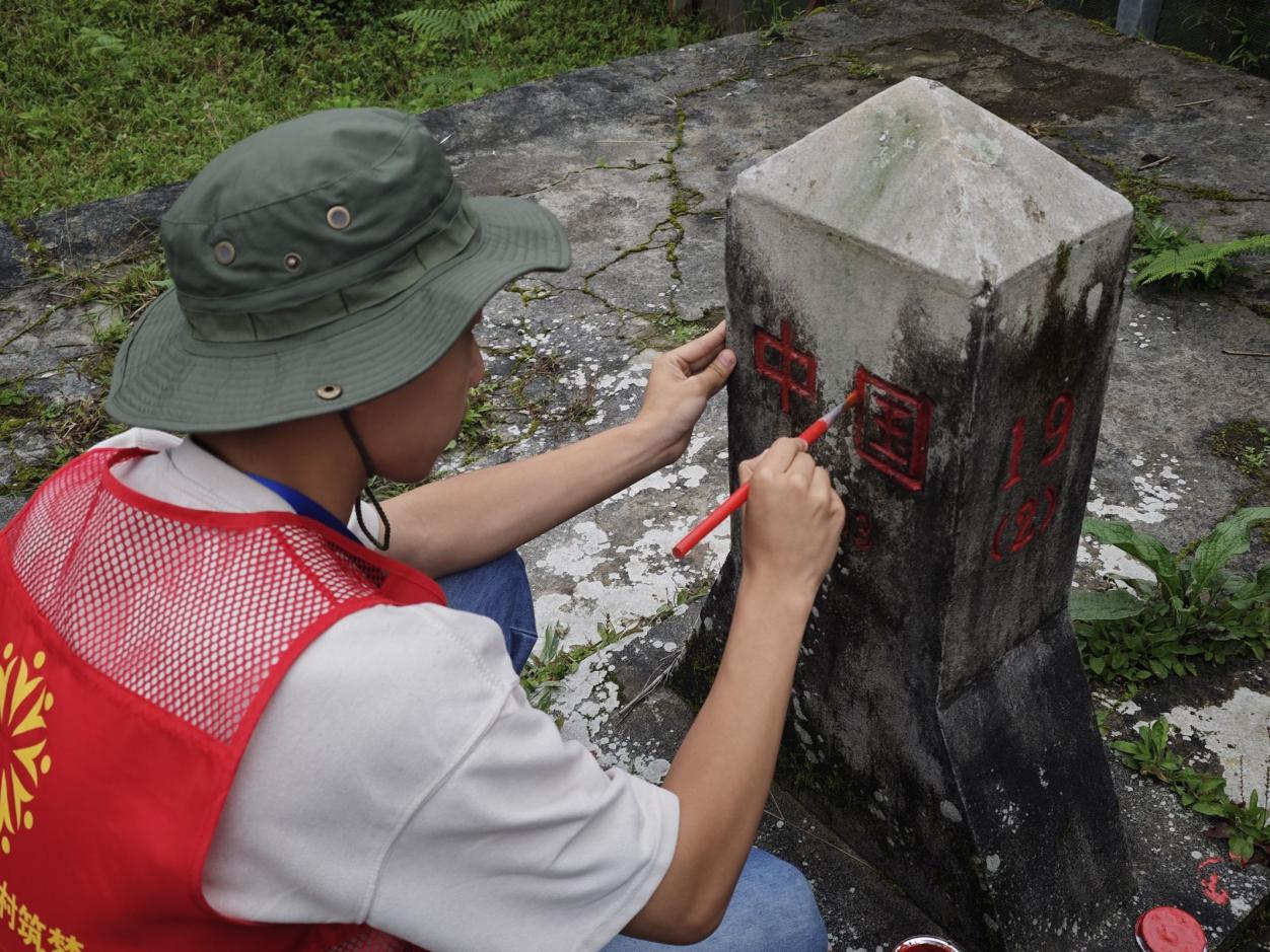 在庄严的国境线上,成员们参与了界碑描红仪式。手持朱漆与毛笔,专注细致地为界碑上的“中国”字样描红添彩。阳光下鲜亮的红色,不仅是对国家主权的庄严维护,更是一次深刻的爱国主义精神洗礼,将守护疆土的信念深植于心。