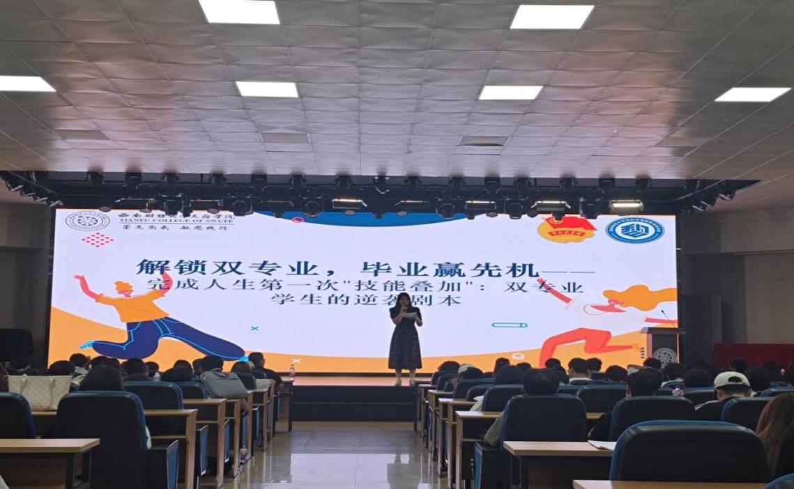 为满足学生多元化发展需求,助力学生提升综合竞争力,9月4日下午,智能科技学院在绵阳校区学术报告厅开展了2024级第二专业宣讲会。智能科技学院分党委书记常荣、金融学院副院长李道波、学校招生办副主任张寒、智科学院综合办主任陈倩、金融学院教师廖悦,智能科技学院大一、大二辅导员及全体2024级本科生参加。