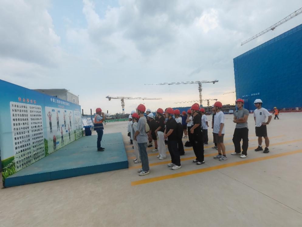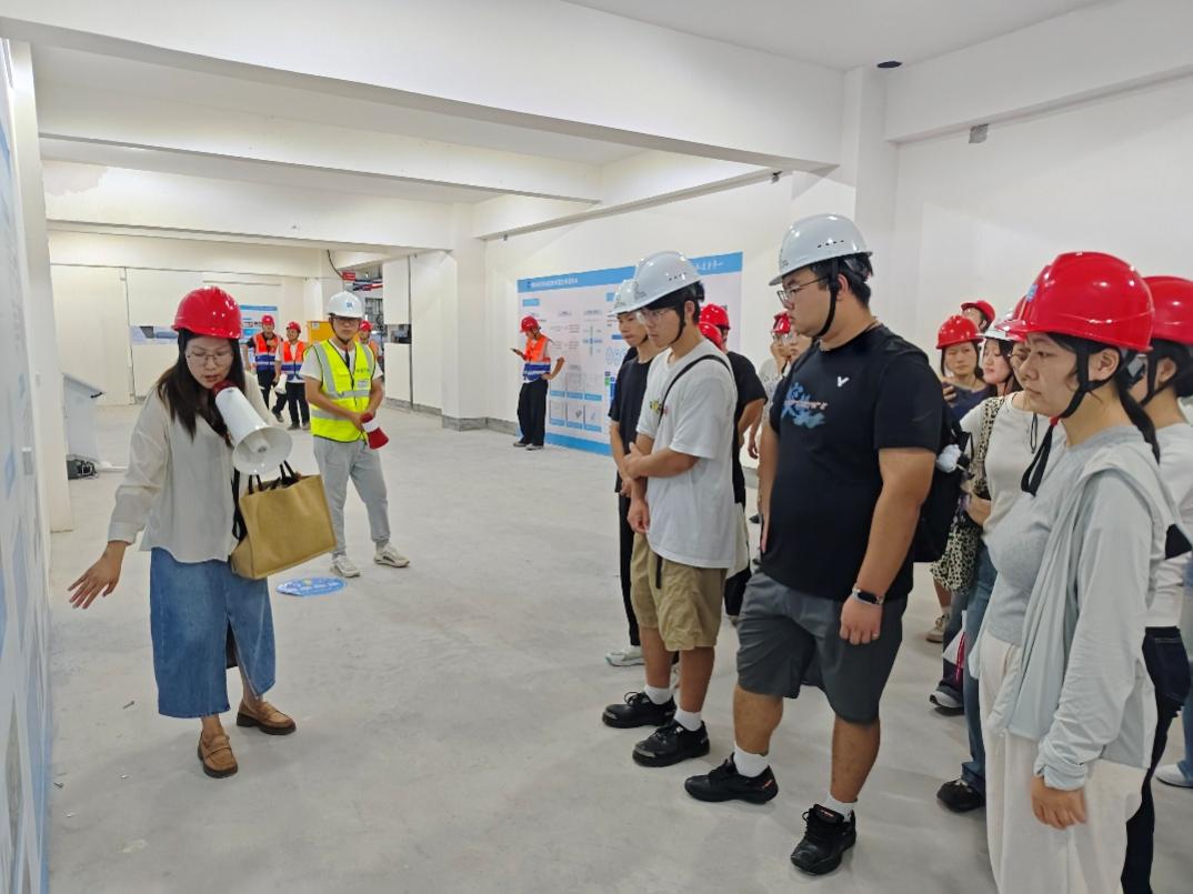 在出发前,陈静对学生们进行了详细的安全教育和任务部署,强调了实践教学的重要性和现场纪律要求。抵达项目现场后,中建三局的工作人员热情地接待了师生一行,并安排了专业的安全监督人员为学生们介绍项目的整体规划、施工进度、智能设备、实体构件、智慧工地等情况。