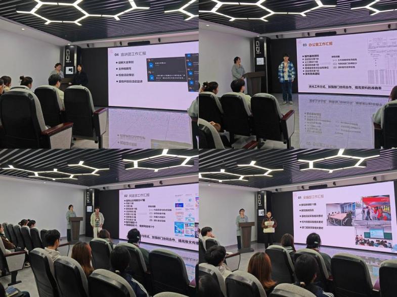 随后,各部门代表依次作本学期阶段性工作汇报。汇报全面梳理了前期工作成果,客观总结了宣传实践中取得的成效,并针对当前存在的薄弱环节进行了深入剖析。结合新学期任务要求,各部门进一步明确了下一阶段的工作重点与改进方向,为后续工作高效开展奠定了坚实基础。