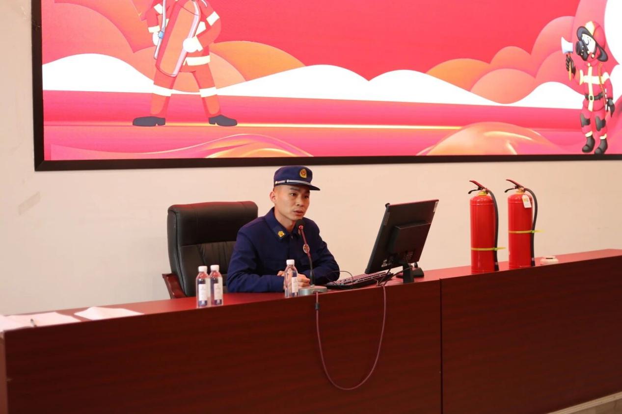 讲座伊始,唐正波以近年来国内高校典型火灾案例为切入点,生动阐述了校园消防安全对于守护师生生命财产安全、保障教学秩序不可替代的重要性。他从消防基础知识切入,系统讲解火灾的定义、分类及燃烧三要素等核心内容,帮助师生建立对火灾风险的科学认知;重点围绕消防安全“四个能力”建设,即检查消除火灾隐患能力、组织扑救初期火灾能力、组织人员疏散逃生能力、开展消防宣传教育培训能力。此外,唐正波通过现场演示与步骤拆解相结合的方式,详细说明灭火器的正确使用方法,并提醒师生疏散时保持冷静、善用通道、勿乘电梯,牢记“生命至上”,提升自救互救能力。