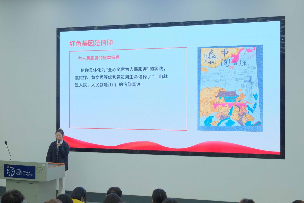 11月11日,西南财经大学天府学院德阳校区第二学生社区“一纸海报承初心,帧帧画面述党魂”党史创意汇比赛决赛在B101教室圆满落幕。决赛邀请了康养护理学院学生党建办公室指导老师陈心悦、郑仁敏以及辅导员代表王翰麟担任评委。