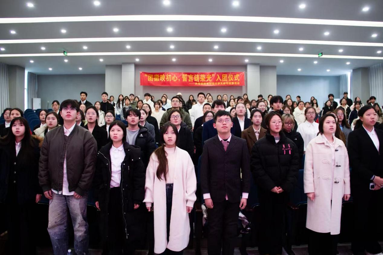 为进一步强化共青团组织建设工作,引领广大青年学子坚定理想信念,12月5日,共青团西南财经大学天府学院委员会精心组织开展了“团徽映初心,誓言铸荣光”新发展团员入团仪式。此次入团仪式在成都校区(东区)238教室举行。学校机关分党委书记蔡松伯、团委副书记朱李、艺术与传媒学院团总支书记张元辰、智能金融学院团总支书记刘海燕、康养护理学院团总支与学生会指导老师胡海鸿、体育学院第三党支部书记徐晓霞以及团员代表等共计190余人积极参与了此次意义重大的活动。