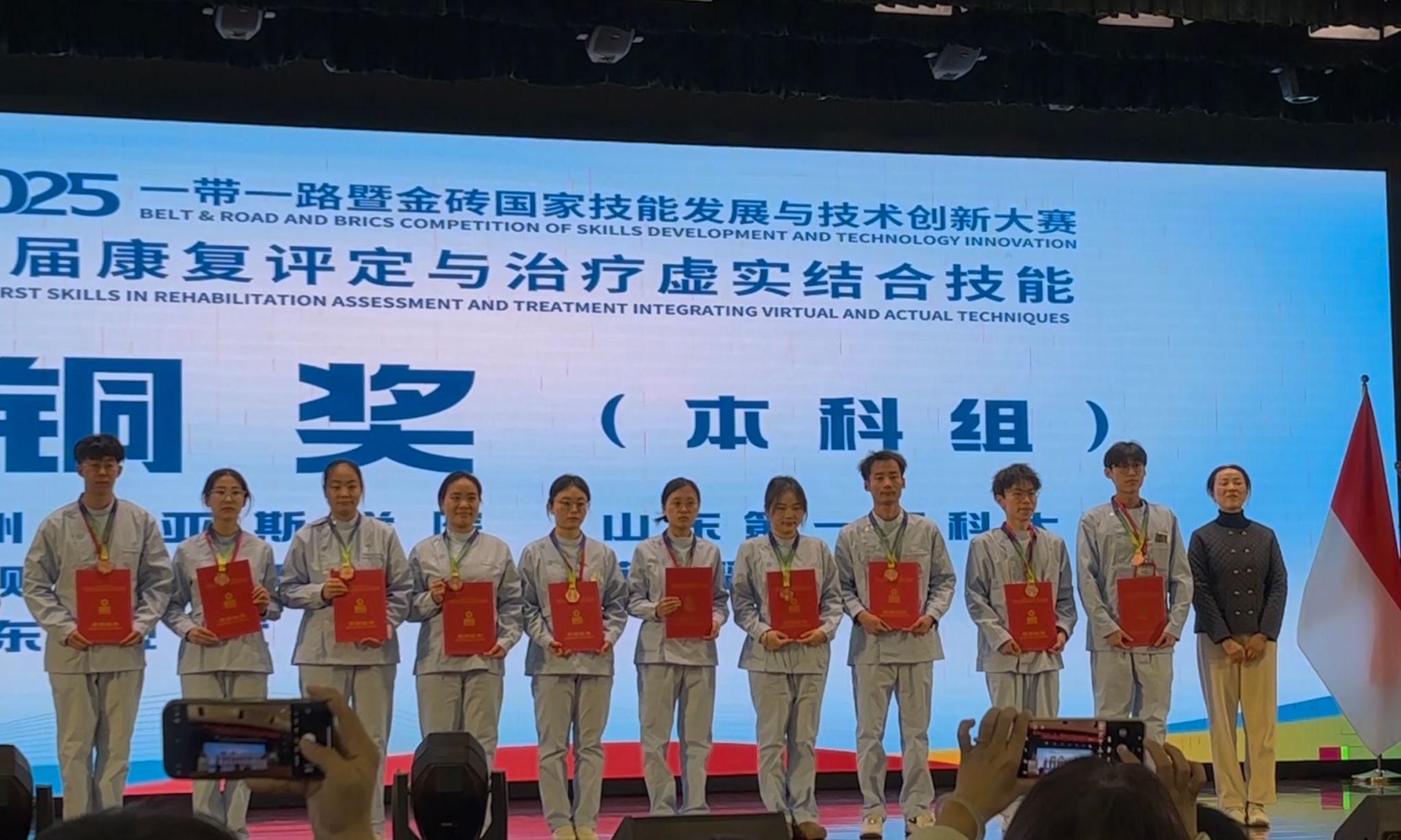 12月19日至22日,2025“一带一路”暨金砖国家技能发展与技术创新大赛首届康复评定与治疗虚实结合技能赛项在南京卫生高等职业技术学校顺利落幕。学校康养护理学院教师吴卓荛带领学生卿悦、周雷、陈文杰、邱芳4人组成的西南财经大学天府学院代表队参赛。最终陈文杰、邱芳荣获铜奖,卿悦、周雷荣获优秀奖。