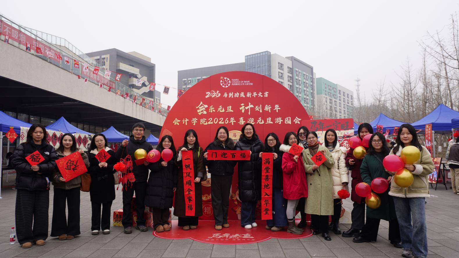 一元复始,万象迎新。为迎接2026年元旦佳节,营造喜庆祥和的节日氛围,丰富师生课余生活,2025年12月30日,西南财经大学天府学院德阳校区会计学院团总支、学生会社团管理服务分中心在蒲公英广场主办的“‘会’乐元旦 ,‘计’划新年”元旦游园会顺利开展。十大特色活动轮番登场,吸引了全校师生热情参与,共同在欢声笑语中辞旧迎新。