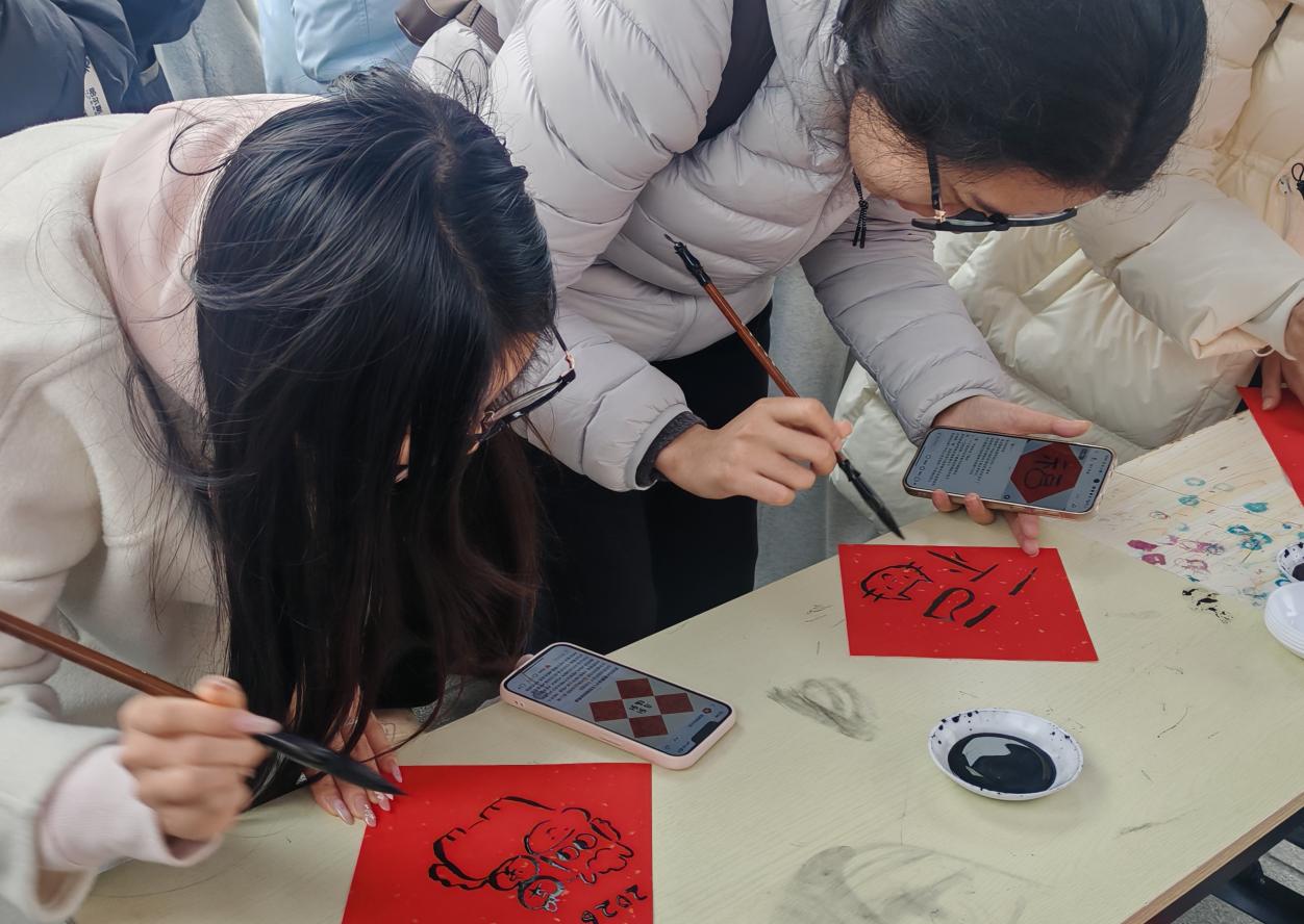 笔墨含情,联语寄心。汉服社与雷锋站联袂,铺展红纸、研墨挥毫。同学们书写“福”字融入百福长卷,亦可借鉴或自创对联,以“书山筑梦”“学海扬帆”等句抒发新年壮志。一横一竖凝祝福,一撇一捺书新愿,让翰墨清香伴随大家共迎春光。