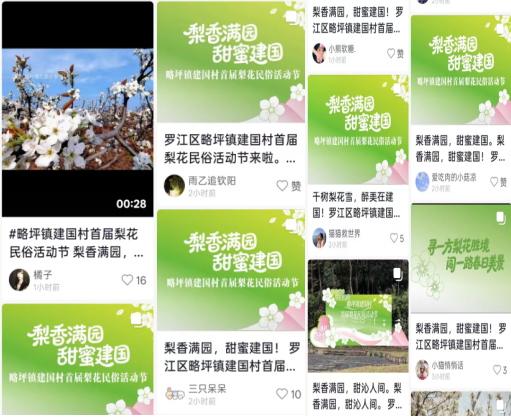 本次抖音宣传活动紧扣建国村首届梨花民俗活动节主题,以数字化宣传为抓手,充分发挥高校专业优势与青年创意能力,打造多形式、多维度的宣传矩阵。活动中,参与师生围绕建国村漫山梨花的春日盛景、特色民俗的乡土风情、乡村振兴的实践成果等核心内容,精心制作宣传短视频、创意宣传海报、趣味AI视频等多元作品,并统一发布至抖音平台。通过生动的镜头、鲜活的画面与新颖的创意,全方位、多角度展现建国村梨花民俗活动节的独特魅力,有效吸引了广大网友关注打卡,为活动的顺利举办营造了浓厚氛围。