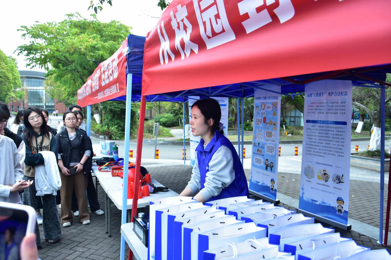 青春逐梦正当时,安全护航启新程。为切实筑牢青年学子从校园迈向职场的安全防线,强化准职场人的工伤预防意识与职业安全素养,助力青年群体平稳实现身份转变,守护青春梦想,共青团西南财经大学天府学院委员会协同成都市成华区人力资源和社会保障局于4月1日在学校成都校区(东区)时代广场举办了以“从校园到职场,工伤预防护航青春梦想”为主题的工伤预防宣传教育活动。