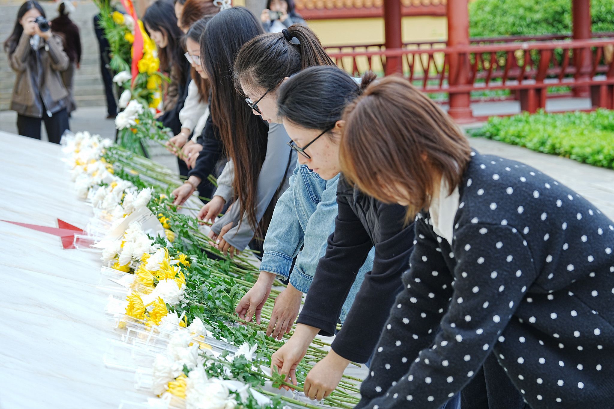 活动当天,师生怀着崇敬之情走进黄继光纪念馆。在庄严肃穆的祭奠仪式上,全体人员整齐列队、肃立默哀,向为国家和人民献出生命的黄继光烈士致以崇高敬意与深切缅怀。默哀毕,师生依次敬献鲜花,在哀思中重温英雄“舍生忘死、保家卫国”的气概,感悟革命先烈的家国担当。