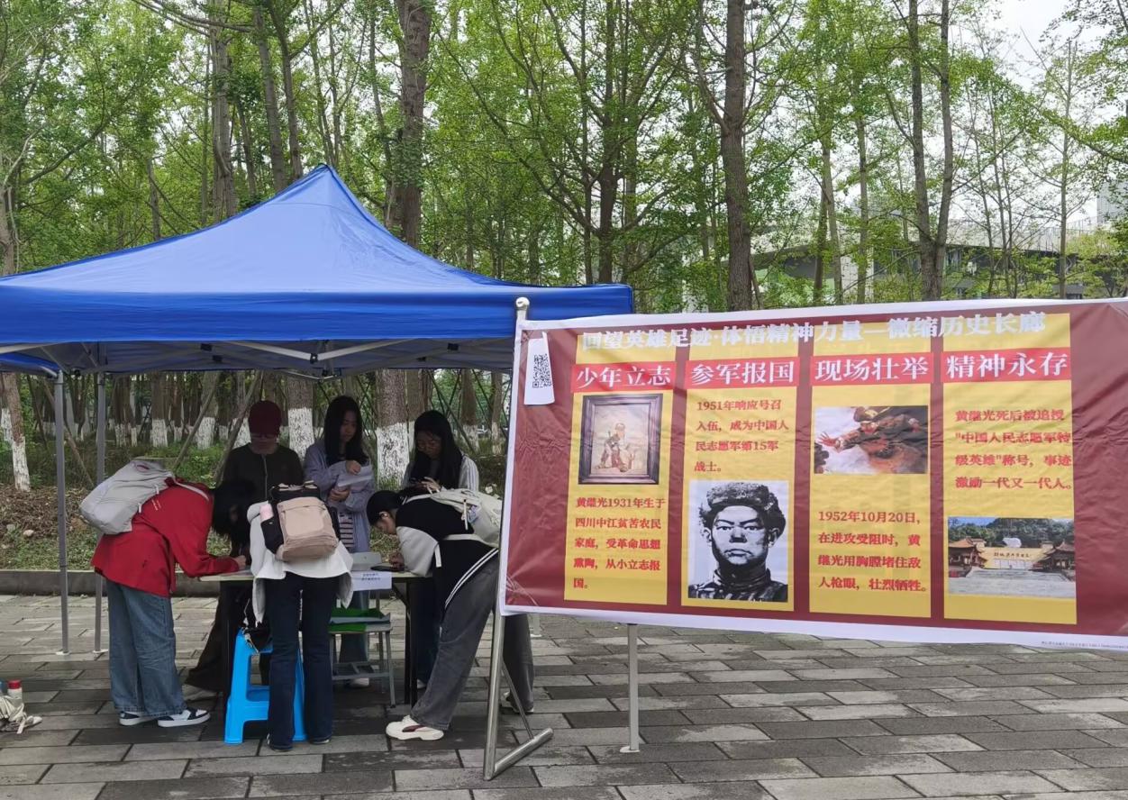 4月13日至15日,会计学院党建办公室联合学院第九党支部学生党建办公室在德阳校区食堂门口举办“身躯堵枪眼,精神耀山河”黄继光英雄精神主题体验系列活动。学院全体学生踊跃参与,在沉浸式互动中感悟英雄气概、传承红色基因。