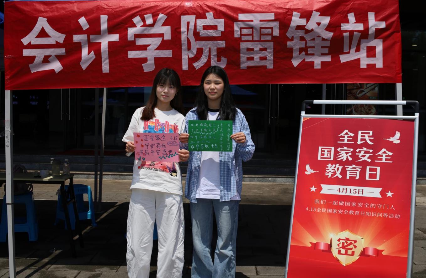 会计学院雷锋站在蒲公英广场开展“我们一起做国家安全的守门人”知识问答活动,以趣味互动的形式,将国家安全教育融入校园生活,引导青年学子树立国家安全意识,主动扛起维护国家安全的青春责任。活动中,工作人员围绕国家安全知识设置问答题目,其内容紧扣新时代国家安全体系,既涵盖政治安全、文化安全、社会安全、网络安全等基础领域,又结合财经专业特色,重点聚焦经济安全、财税合规、个人信息保护、校园金融风险防范等内容,让安全知识更具针对性与实用性。