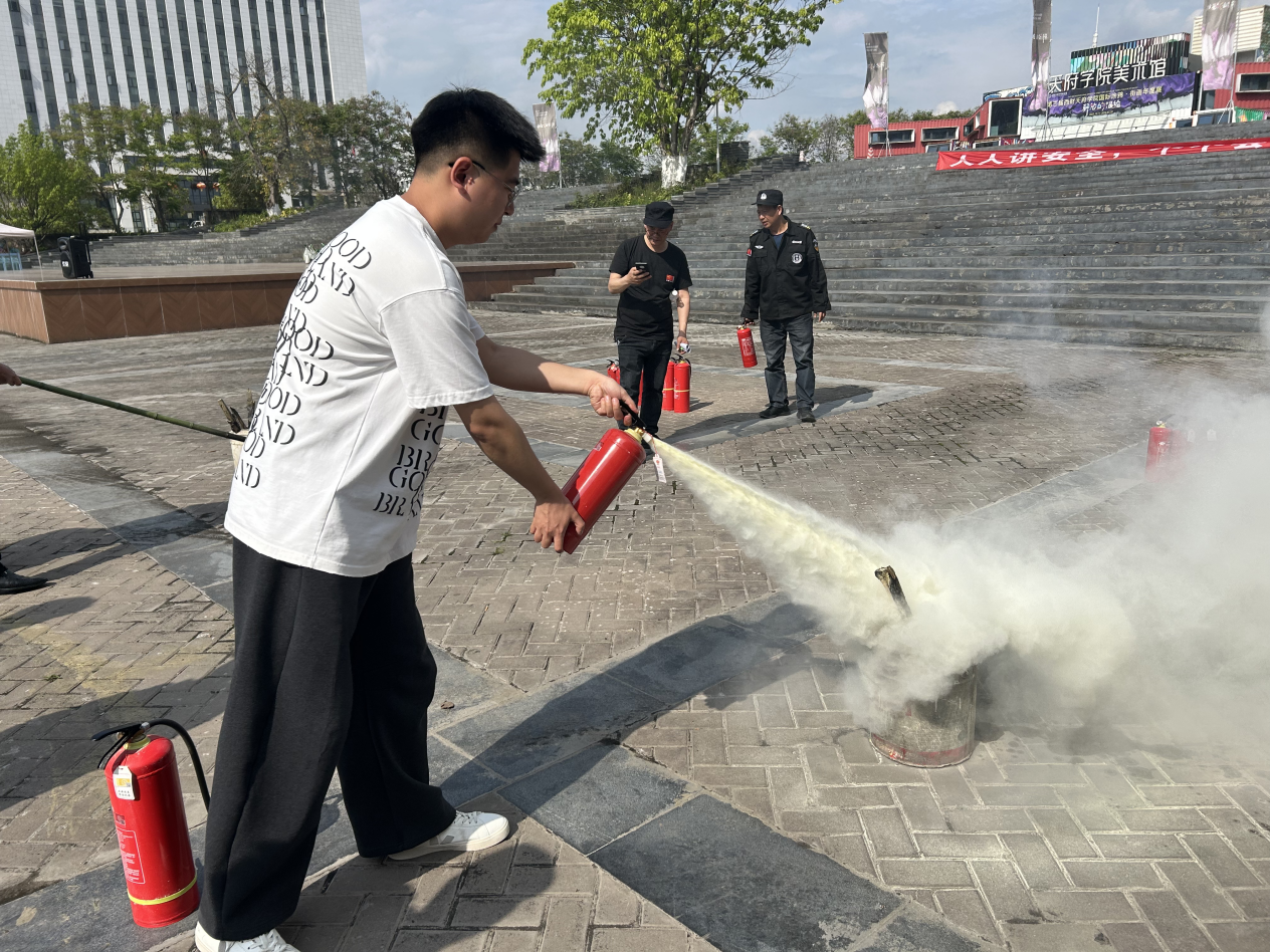 理论宣讲结束后,火灾应急疏散演练随即展开。在统一指挥下,全体师生按照既定逃生路线,严格遵循“弯腰低姿、湿巾捂口、有序撤离”等规范要领,快速、安全、有序完成疏散任务,有效检验和提升了实战应急能力。师生快速有序完成应急疏散模拟后,成华区消防救援大队华盛路政府专职救援站消防人员系统讲解消防知识并进行标准示范,教职工在专业指导下实操灭火器扑灭模拟火源,有效提升了全体人员的消防安全技能与实战应对能力。