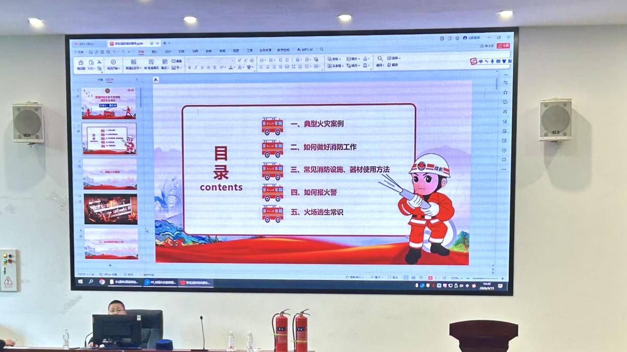 讲座伊始,廖浩借助火灾案例警示教育片,还原事故现场,直观展现了火灾的巨大危害。结合校园环境特点,他全面分析校园消防安全现状,围绕教室、宿舍等关键区域,细致讲解日常防火常识,引导大家从源头规避安全隐患。随后,他详细介绍各类常用消防器材,现场示范规范操作流程,并科普正确拨打火警电话的方法,明确消防安全责任。活动讲座最后,全体师生共同观看总体国家安全观思政大课视频,将消防安全与国家安全教育有机结合,有效增强了全体师生的安全防范意识与责任意识。