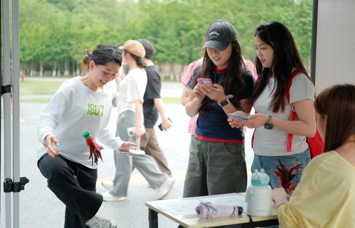 “弄谱游园会”依托《弄谱》所载传统游艺,设置踢毽子、颠球、区字棋三项趣味游戏,将古代民俗与现代校园生活相结合。1200余名师生踊跃参与、沉浸式体验,在游戏互动中感受古人闲情雅趣,体悟传统游艺承载的文化内涵,于轻松愉悦的氛围中感受传统文化的鲜活魅力。