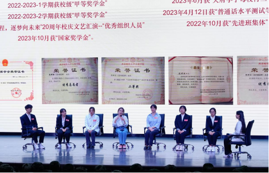 此次分享会邀请董科、代华兰、王罗裙、陈妍羽、李寅演、杨赛儿、吴盈7位优秀学生作为主讲嘉宾。他们结合自身经历,通过模拟“国家奖学金”现场答辩形式,向学弟学妹们分享了在学业、生活和职业规划方面的经验与故事。