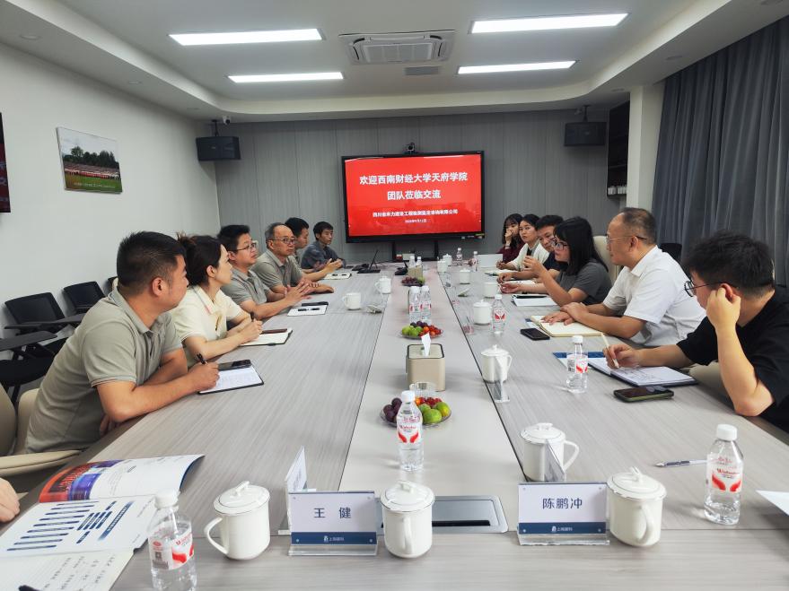 9月12日,西南财经大学天府学院工程与材料学院一行赴四川省禾力建设工程检测鉴定咨询有限公司(上海建科集团股份有限公司成员企业)进行企业走访调研,旨在深化校企合作,推动产教融合,共谋协同发展新路径。学院常务副院长范香和院长助理宋平、刘浩东,学院材料系主任张婧鹏、副系主任肖逸菲、低空系副系主任郑丽红,产教融合中心主任葛承鑫以及骨干教师代表王健、陈鹏冲、蒋思朋参与本次调研。四川禾力建设工程检测鉴定咨询有限公司董事长王琼、总经理刘雄及各部门技术骨干热情接待并参与座谈。