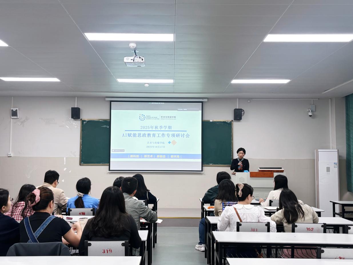 为顺应人工智能时代发展要求,提升辅导员队伍数智素养与创新能力,推动思想政治教育从传统经验型向数据驱动、智能辅助的新型模式转型,10月17日,艺术与传媒学院在成都校区(东区)L5-345教室与德阳校区图书馆425办公室同步召开“育人深耕,数智赋能——AI赋能思政教育工作”专项研讨会。学院分党委书记彭雯秀,副书记林琳、马俊以及全体辅导员参会。