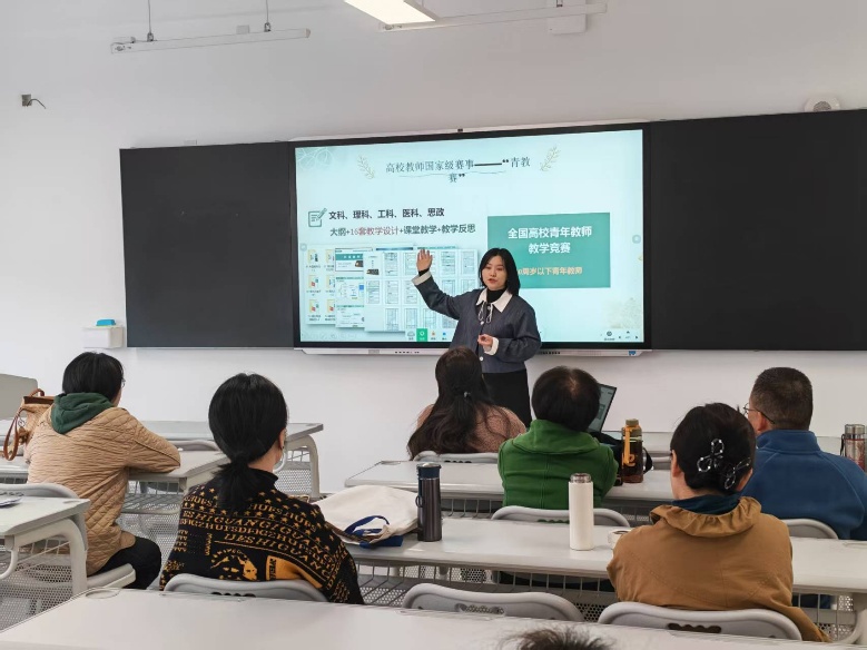 分享会上,刘彤首先对高校教师国家级两大赛事进行了系统介绍。全国高校青年教师教学竞赛以“上好一门课”为核心理念,重点考察教师的教学基本功,该竞赛要求参赛教师准备大纲、16套教学设计、课堂教学及教学反思,现场随机抽取一个教学节段进行课堂教学展示。“青教赛更注重教学规范性和课堂感染力,是对教师教学基本功的全面检验。”她表示,全国高校教师教学创新大赛则着眼于“推动教学创新,培养一流人才”。刘彤指出,该赛事设置了新工科、新医科、新农科、新文科、基础课程、课程思政、产教融合等七大赛道,参赛教师需要准备2个学时教学实录+4000字创新成果报告+现场汇报,并强调教学创新的实践效果与推广价值。