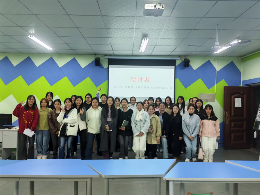 为帮助教育专业学生厘清教学思路、优化教学设计,进一步提升学生的教学实践能力与专业素养,搭建教学技能交流与展示的平台,为未来走上讲台夯实基础,文化与教育学院博雅社携手文化与教育学院学生第二社区于10月21日晚,在三教声乐室举办了第一期绘讲者活动。此次活动吸引了众多对教学实践感兴趣的学生积极参与,邀请文化与教育学院教师贺婷莅临现场提供专业指导。