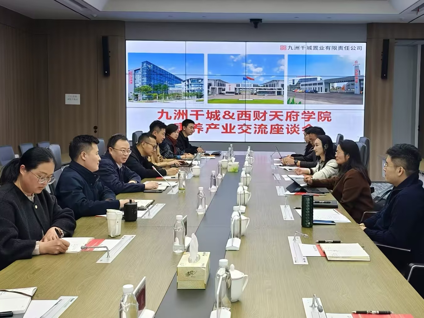 11月12日,西南财经大学天府学院与九洲千城置业有限责任公司(以下简称“九洲千城”)在汇巨大厦1914会议室举行康养产业交流座谈会。学校康养护理学院院长段艮芳和副院长兼康养产业中心主任阮金中、产教融合中心主任王钰等作为校方代表,与九洲千城党支部书记、董事长王强,总经理杨金及集团战略发展部相关负责人共同参会。双方围绕康养产业协同发展议题进行了深入交流。