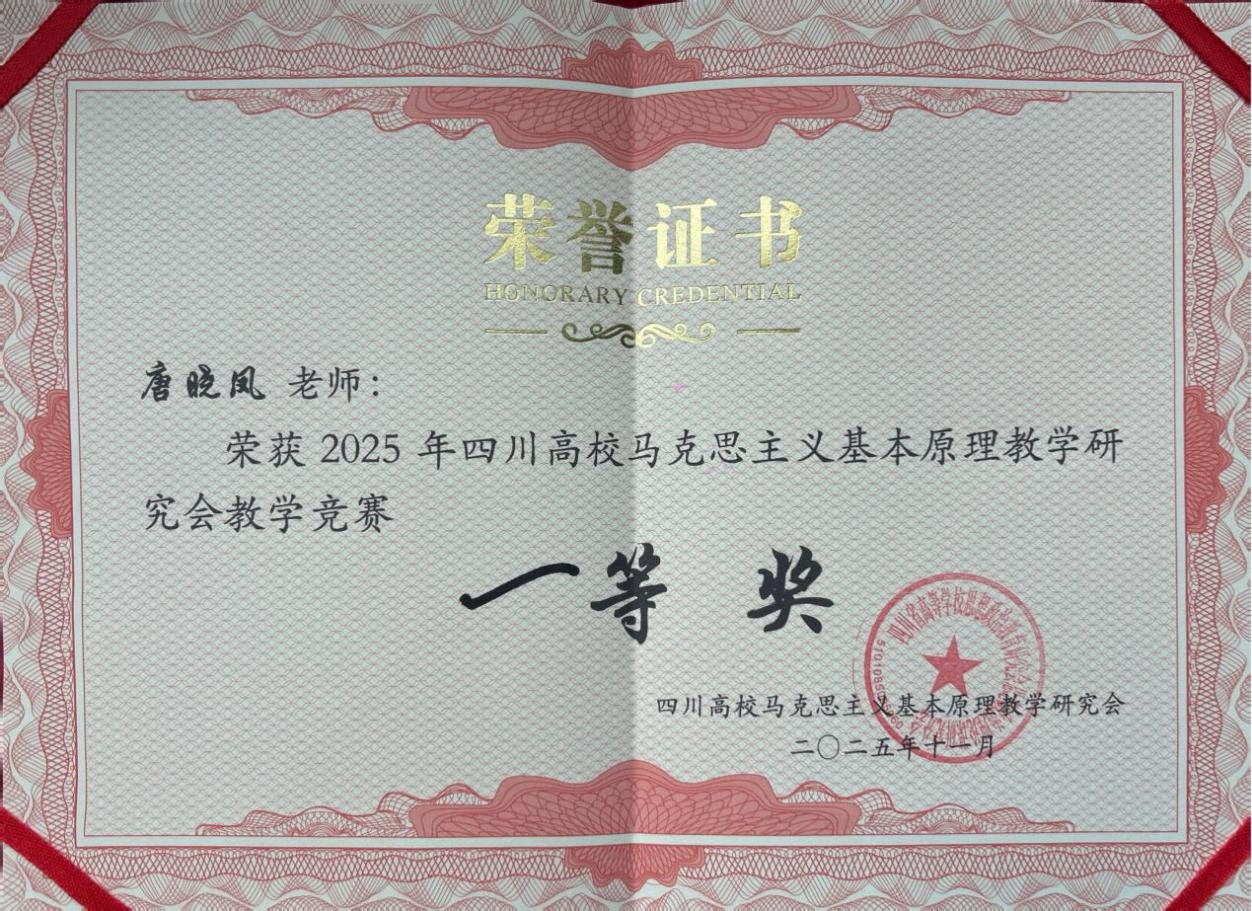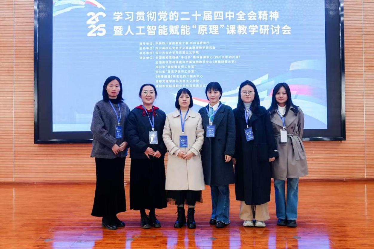 11月28日至29日,四川高校马克思主义基本原理教学研究会2025年年会在四川农业大学温江校区举行。本次年会以“学习贯彻党的二十届四中全会精神暨人工智能赋能‘原理’课教学”为主题,学院教师唐晓凤荣获课程教学竞赛一等奖。