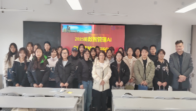 12月23日,现代管理学院举行2025级数智管理AI创新实验班开班仪式。学院副院长高丹教授、分党委副书记潘兰副教授、院长助理杜民帅副教授以及22名入选学生共同出席,仪式由杜民帅主持。