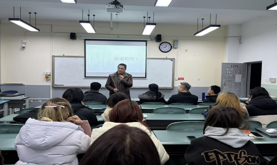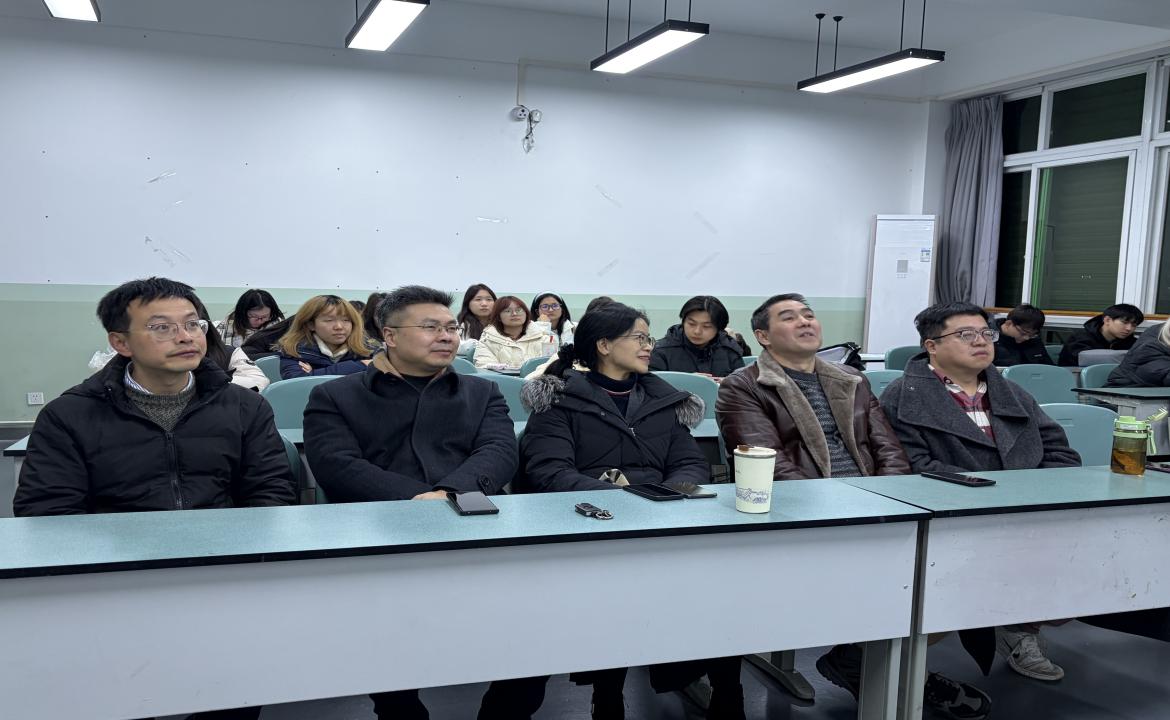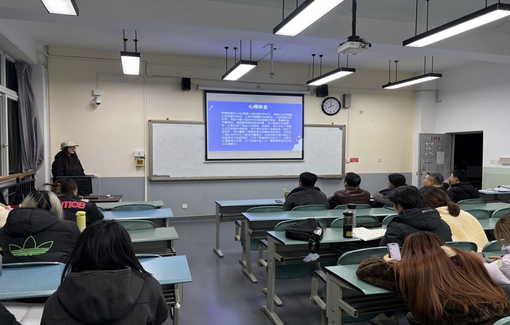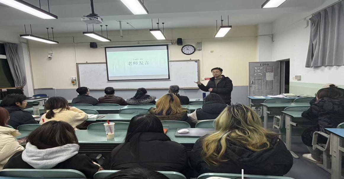 12月23日晚,一教1104教室内气氛热烈。2025年秋季学期英语创新班优秀成果展示汇报会正式拉开帷幕。文化与教育学院副院长张维、语言文学系主任周忠杰,应用语言学中心主任兼英语创新班班主任郭家宏,语言文学系教师赵红梅、王祥熙莅临现场观摩。