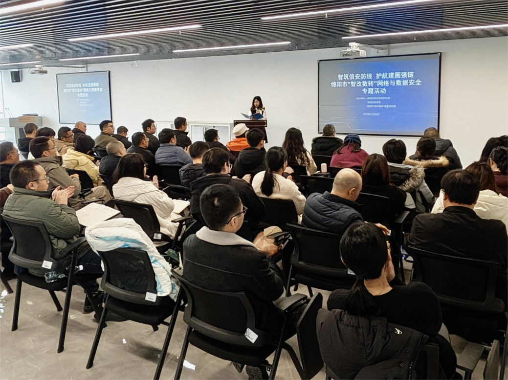 12月25日,“智筑信安防线,护航建圈强链”网络与数据安全专题活动在西南财经大学天府学院产教融合绵阳基地圆满举行。本次活动由绵阳市经济和信息化局、西南财经大学天府学院、绵阳市“智改数转”服务商联盟联合主办,学校产教融合中心教师谭钦颖担任主持人。活动紧扣制造业“智改数转”关键进程中的网络与数据安全核心诉求,汇聚政府相关部门领导、行业资深专家及全市重点制造业企业代表,以实战分享、深度剖析、经验交流等多元形式,为绵阳制造业高质量发展筑牢坚实的网络与数据安全屏障。