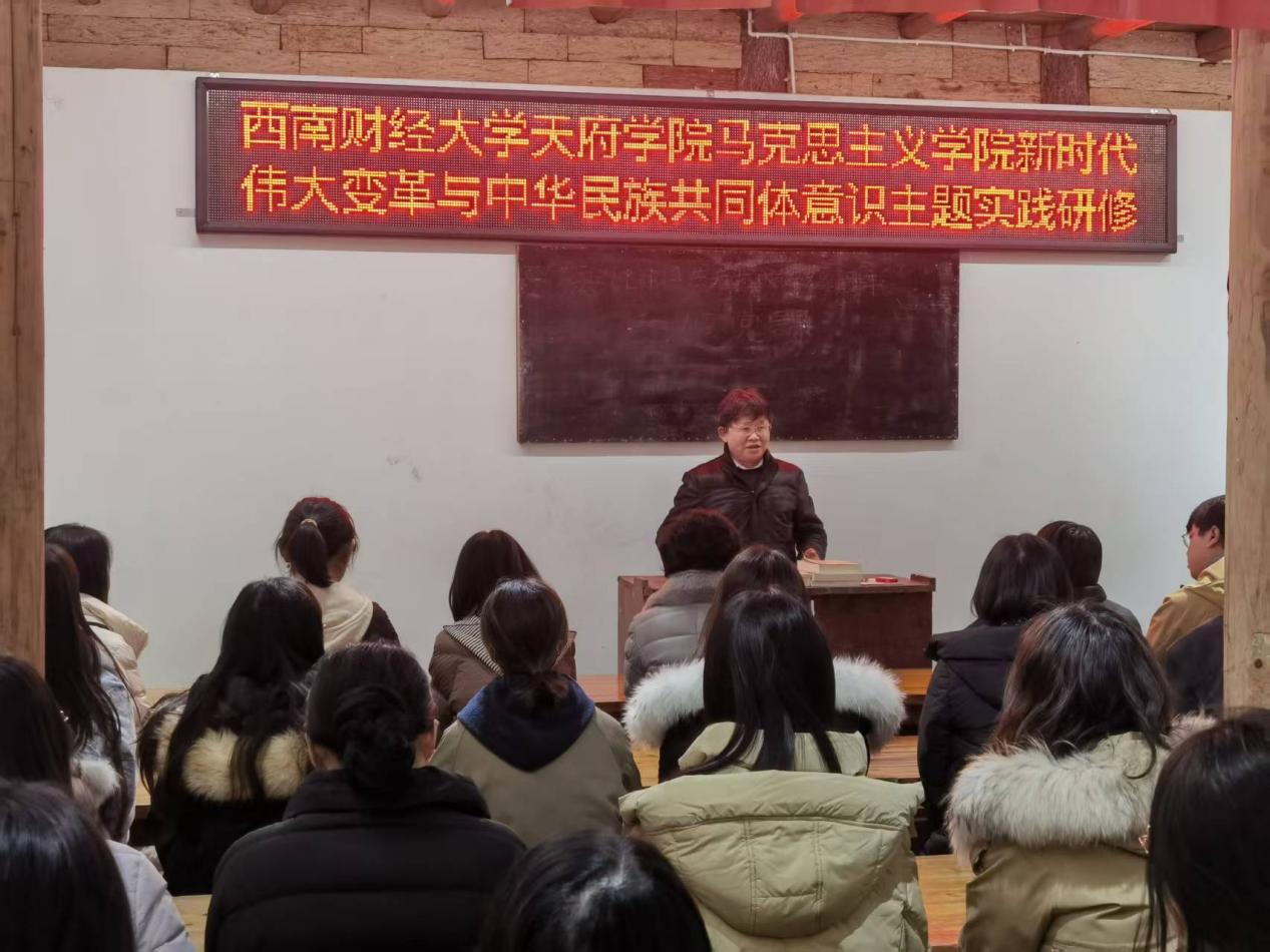 2025年12月30日,马克思主义学院赴绵阳市平武县走马羌寨,开展“新时代伟大变革与中华民族共同体意识”主题实践研修活动。本次活动由学院院长丁灵芝带队,智能科技学院与马克思主义学院40余名教师参加,旨在通过实地调研、文化体验与专题研讨,深化对新时代伟大变革与中华民族共同体意识的理解,提升思政课教学的实践性与时代性。