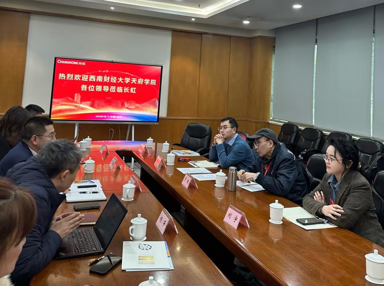 1月9日,西南财经大学天府学院现代管理学院院长罗珉率队赴四川长虹电子控股集团有限公司开展交流座谈。团队成员包括学校现代管理学院副院长刘宇、继续教育学院副院长佘脊和教师王俐丹。本次交流会以“深化校企合作,共育未来人才——聚焦人工智能时代的管理创新与科研协同”为主题,共同探讨校企合作新路径。