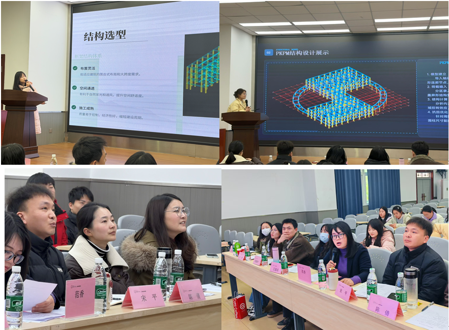 会议伊始,陈静向在场的各位老师及学生致以诚挚的欢迎,并介绍了出席本次答辩会的领导及嘉宾。随后,陈静老师向大家阐述了本次会议议题,分别是建筑焕新-改造制图包、结构设计综合实训包成果、AI赋能科研技能提升包成果分享与汇报展示。
