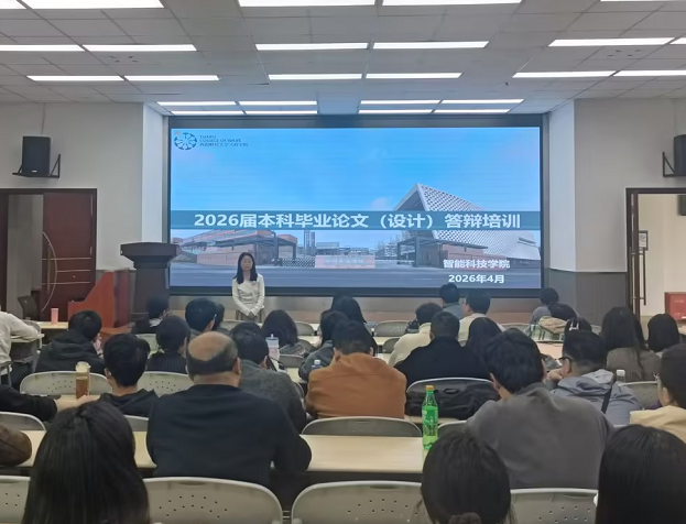 为强化毕业设计(论文)质量管控,确保2026届本科毕业答辩工作规范有序开展,4月1日下午,智能科技学院在实验楼110召开了2026届毕业论文答辩工作培训会。此次培训会由学院教师杨晓欢主讲,学院副院长陈小宁出席会议,学院全体答辩成员参会。