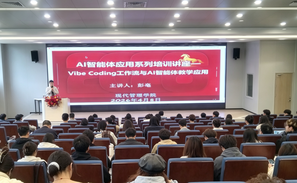 为推动AI智能体与教育教学深度融合,助力师生实现从“被动使用工具”到“主动创造工具”的转型,4月8日,现代管理学院持续深化AI智能体系列培训,特邀人工智能应用领域专家彭毫主讲“Vibe Coding工作流与AI智能体教学应用”专题讲座,全院教师及学生代表沉浸式参与实操学习。
