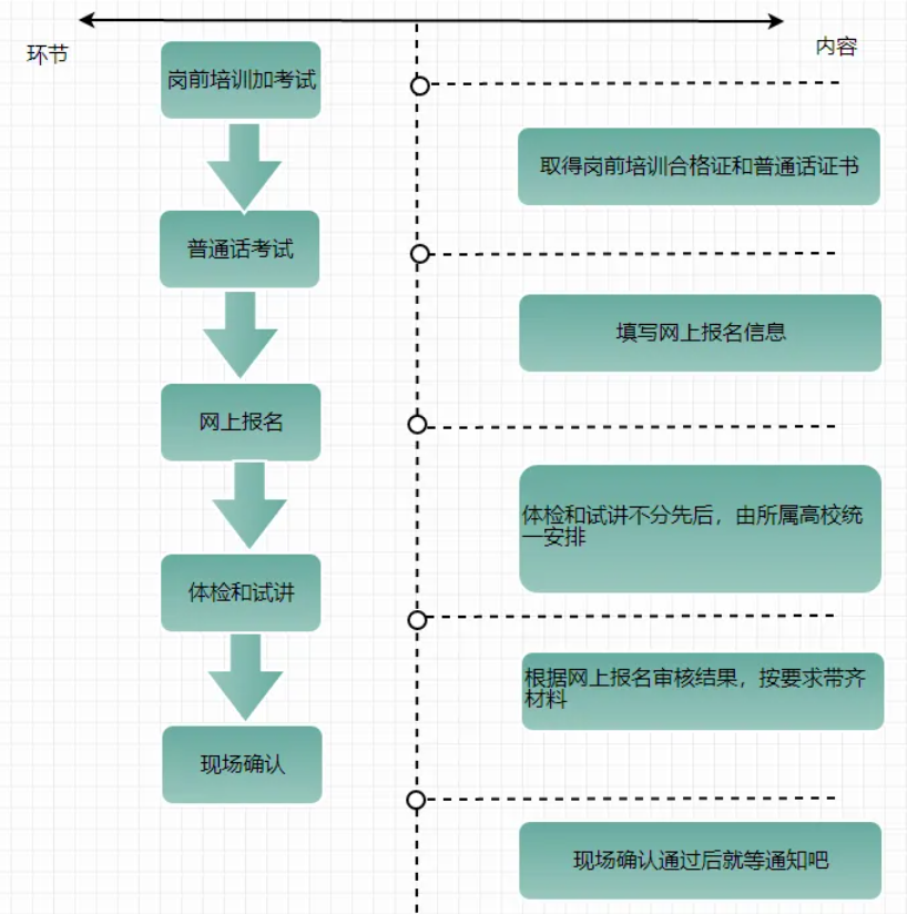 教师资格认定的全流程大概为期一年时间,流程包括: