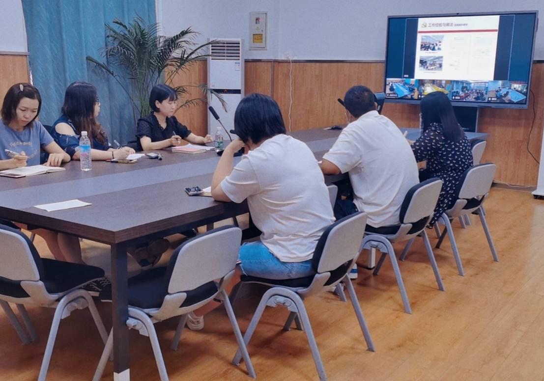 随后,周敏对前期开展的党史学习教育工作中取得的成绩进行了总结,对学校强化组织领导、压实工作责任,党史学习教育有深度扎实开展方面;各二级党组织通过三会一课制度、主题党日等活动开展丰富的党史学习教育方面;包括学校通过开展党课、党员干部线上学习、“我为群众办实事”各级层面立项等学习形式取得的成绩进行了肯定,并指出在取得成效的同时,各单位要积极查找不足、填补短板。
