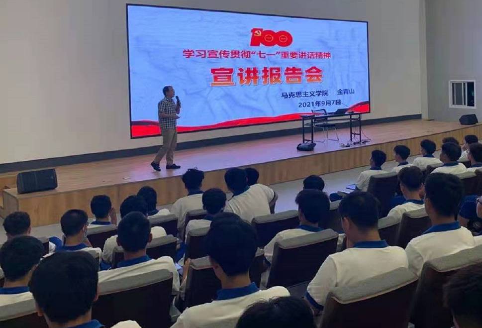 根据德阳市罗江区关于学习宣传贯彻习近平总书记“七一”重要讲话精神的安排部署,9月7日、8日晚,马克思主义学院德阳校区组织开展学习宣传贯彻“七一”重要讲话精神宣讲报告会。本次宣讲报告会面向德阳校区全体大一新生,由马克思主义学院教师组成宣讲团,分六场进行。