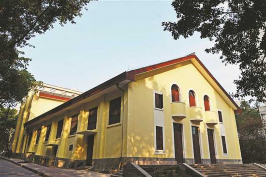 中西合璧的风格,整个建筑呈矩形……在重庆大学A区后校门旁,一座占地近千平方米的礼堂掩映在绿树丛中。冬日的阳光洒在温暖的黄色墙面上,愈发映衬出这栋建筑的厚重。